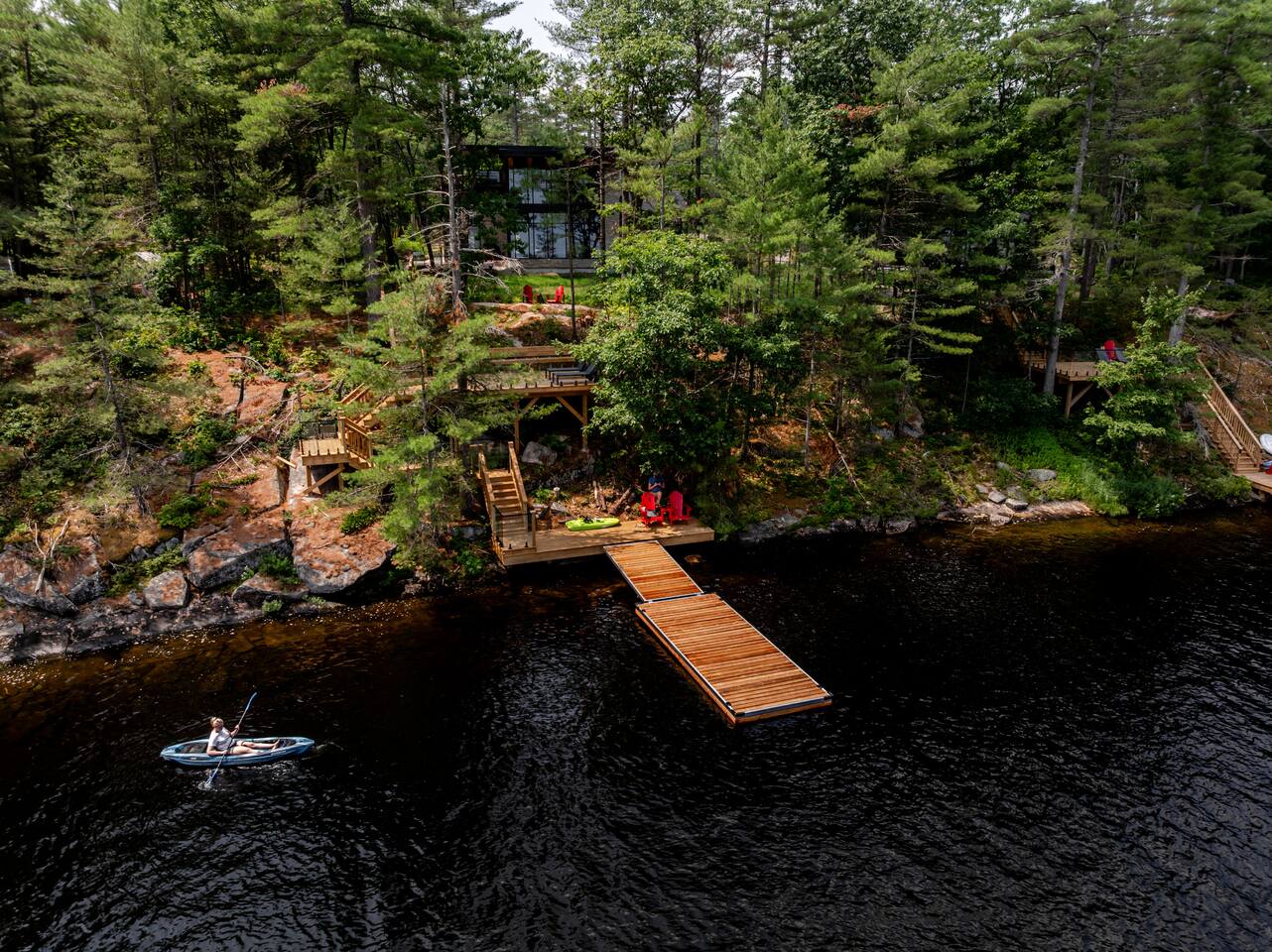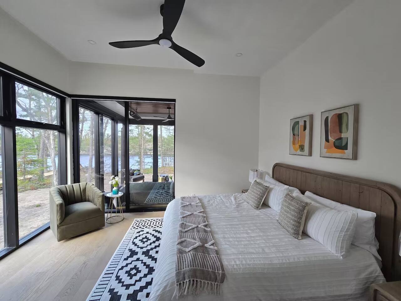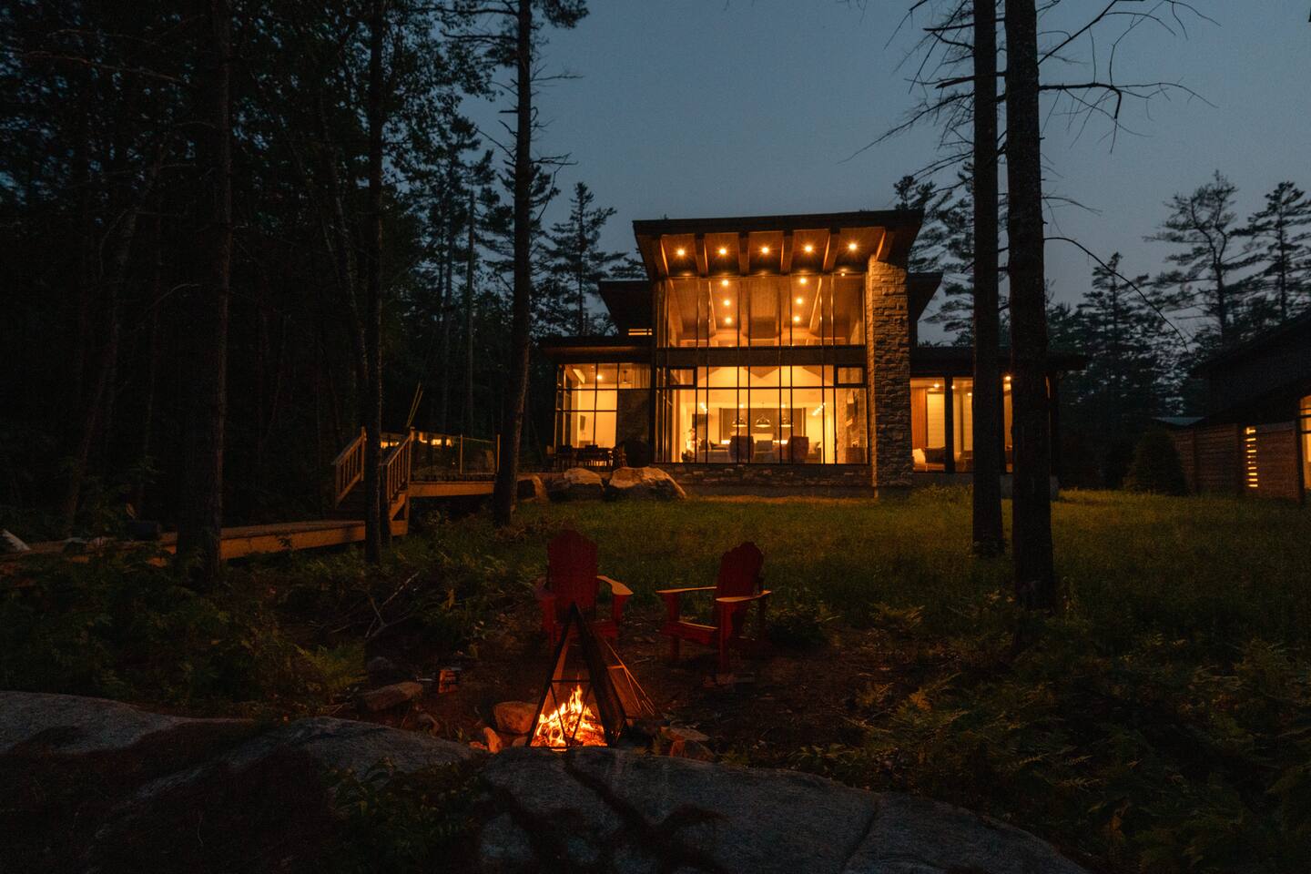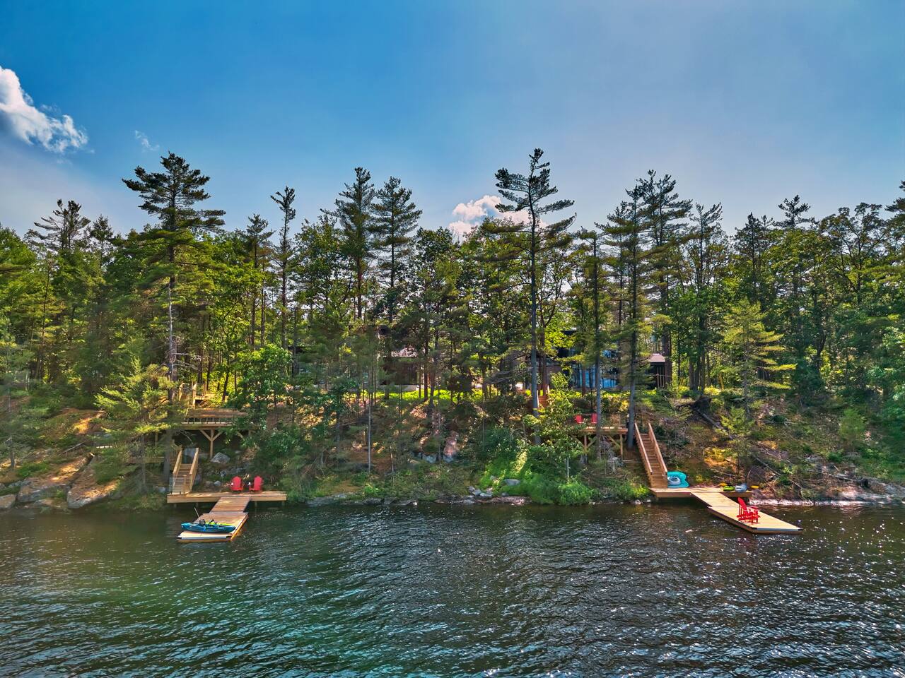 Escape to two stunning, side-by-side luxury cottages on the shores of Muldrew Lake — the ultimate setup for elevated family gatherings, corporate retreats, or special events in Muskoka. Each custom-built, 6-bedroom waterfront cottage offers its own private hot tub, fire pit, and direct lake access — giving you the rare option to book both properties together for large groups, or separately for more intimate getaways. Combined, the cottages sleep up to 24 guests, with over 9,000 sq ft of total living space designed for comfort, privacy, and connection. Located just minutes from Gravenhurst, these four-season retreats blend modern design with serene natural surroundings — perfect for slowing down, recharging, or bringing people together in a setting that feels both luxurious and grounded. PROPERTY HIGHLIGHTS (PER COTTAGE) 6 spacious bedrooms (each) 3 king bedrooms, 1 twin/single rooms, 1 flex/office with 1 single bed Chef’s kitchen with modern appliances, wine fridge, cooking essentials, and both a drip coffee and a Nespresso Vertuo Cups machine. Cozy grand room with soaring windows and fireplace Basement lounge with games area, extra beds, and smart TV ENSUITE INFORMATION 2 master bedrooms on the main floor, each with a full ensuite bathroom, plus a half bathroom in the common area. 2 bedrooms on the second floor share a shower, with individual toilets and sinks. Basement: 1 full bathroom. OUTDOOR AMENITIES (PER COTTAGE) Private hot tub overlooking the lake Fire pit area for late-night conversations under the stars. Please remember to bring your own firewood Expansive deck for yoga, dining, or sunset cocktails Lakefront access with kayaks, floaties, and life jackets included Ample space to relax, reconnect, or celebrate under the trees Whether you’re planning a multi-family getaway, a wellness retreat, or a team offsite, these cottages offer the rare balance of togetherness and privacy — with every detail designed to help you slow down and stay comfortably.