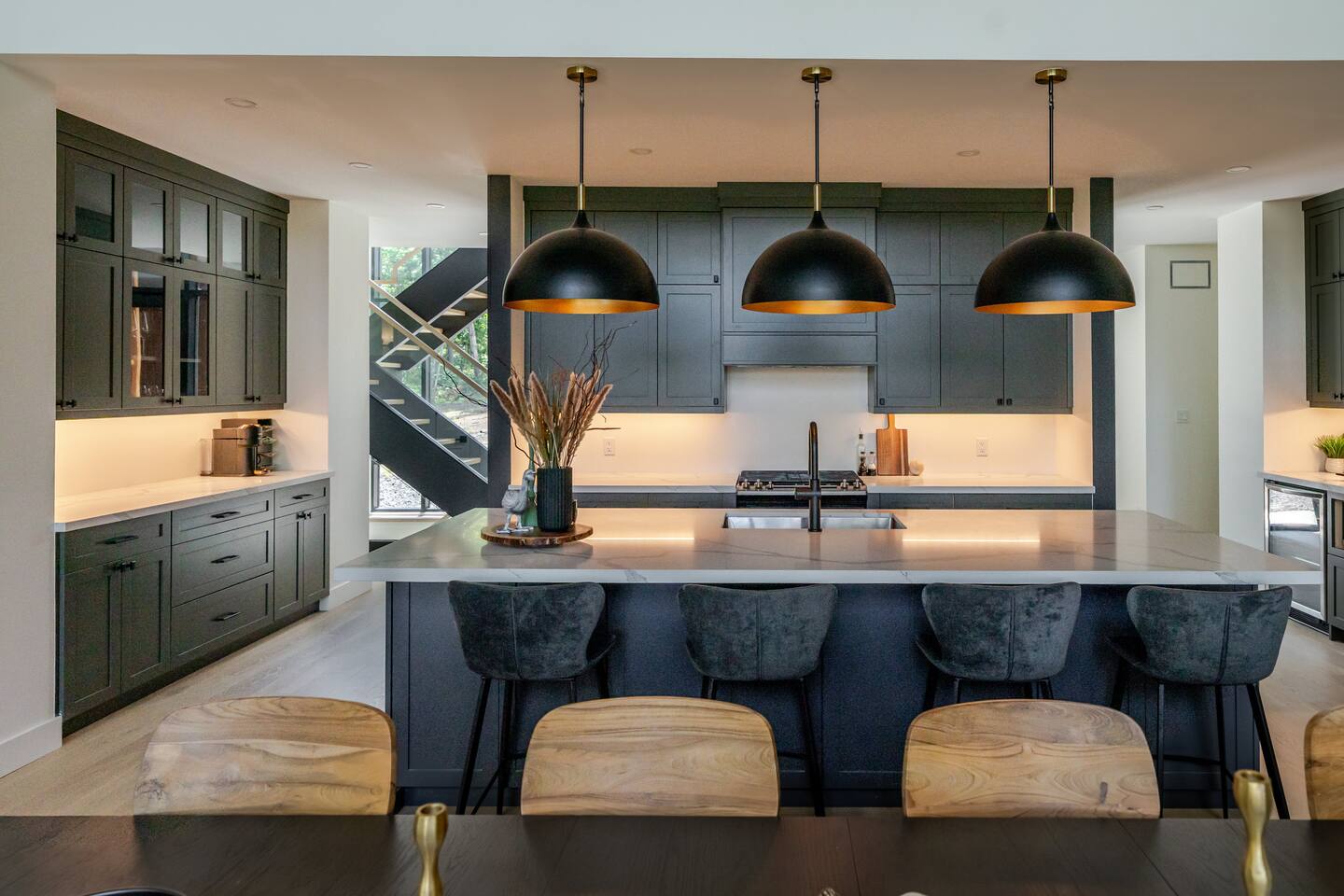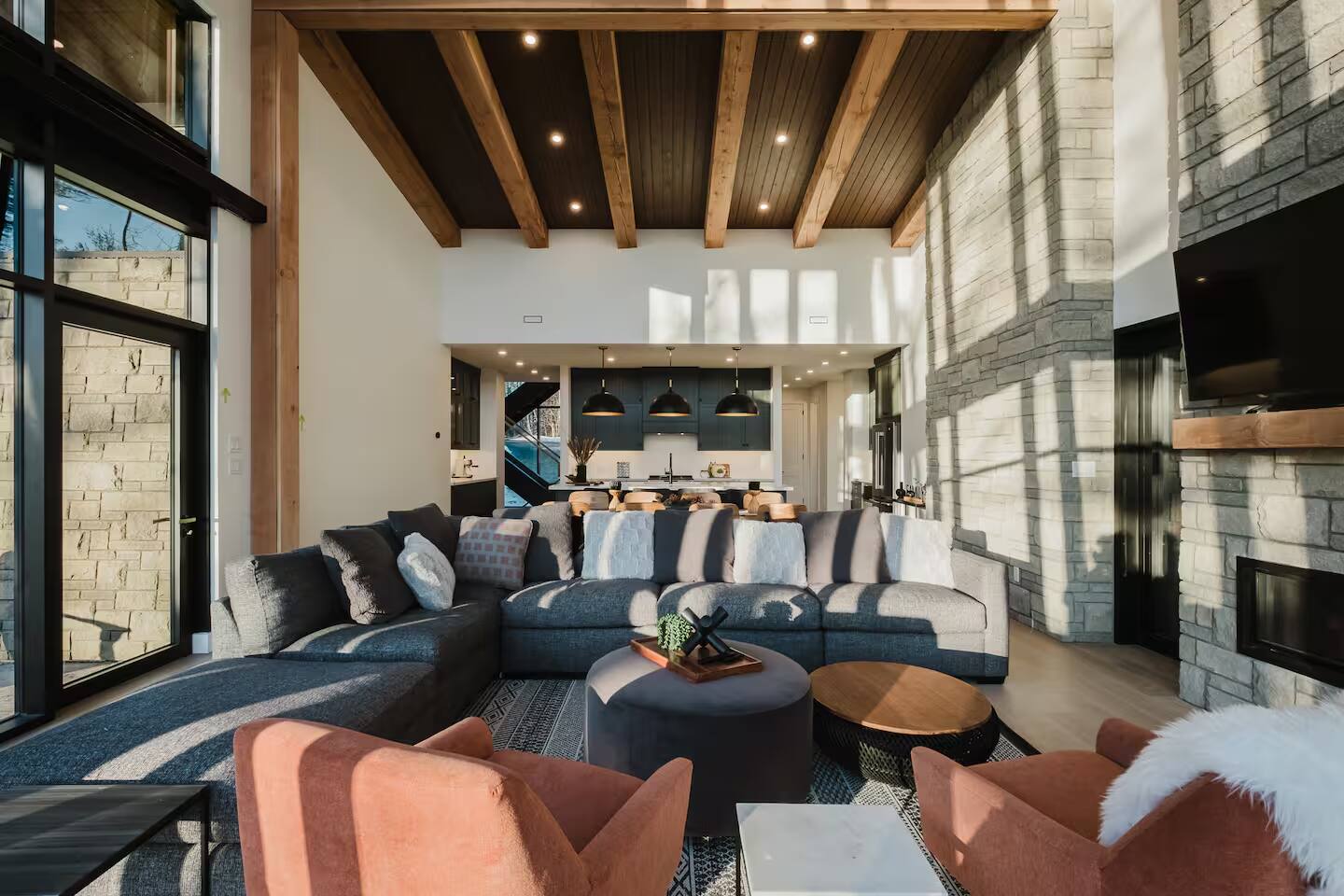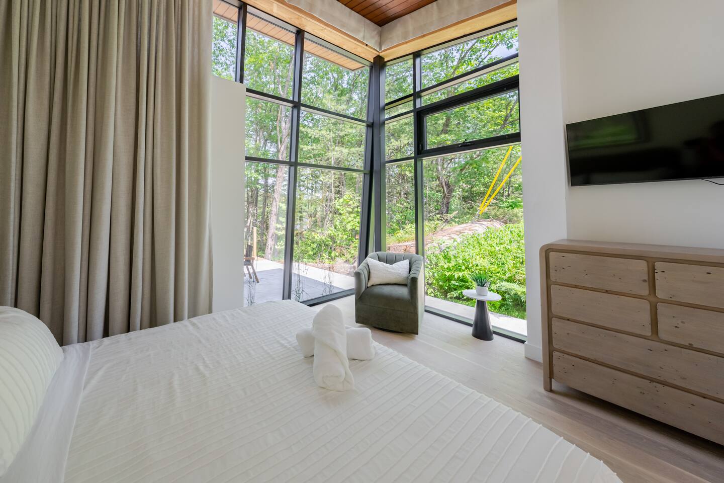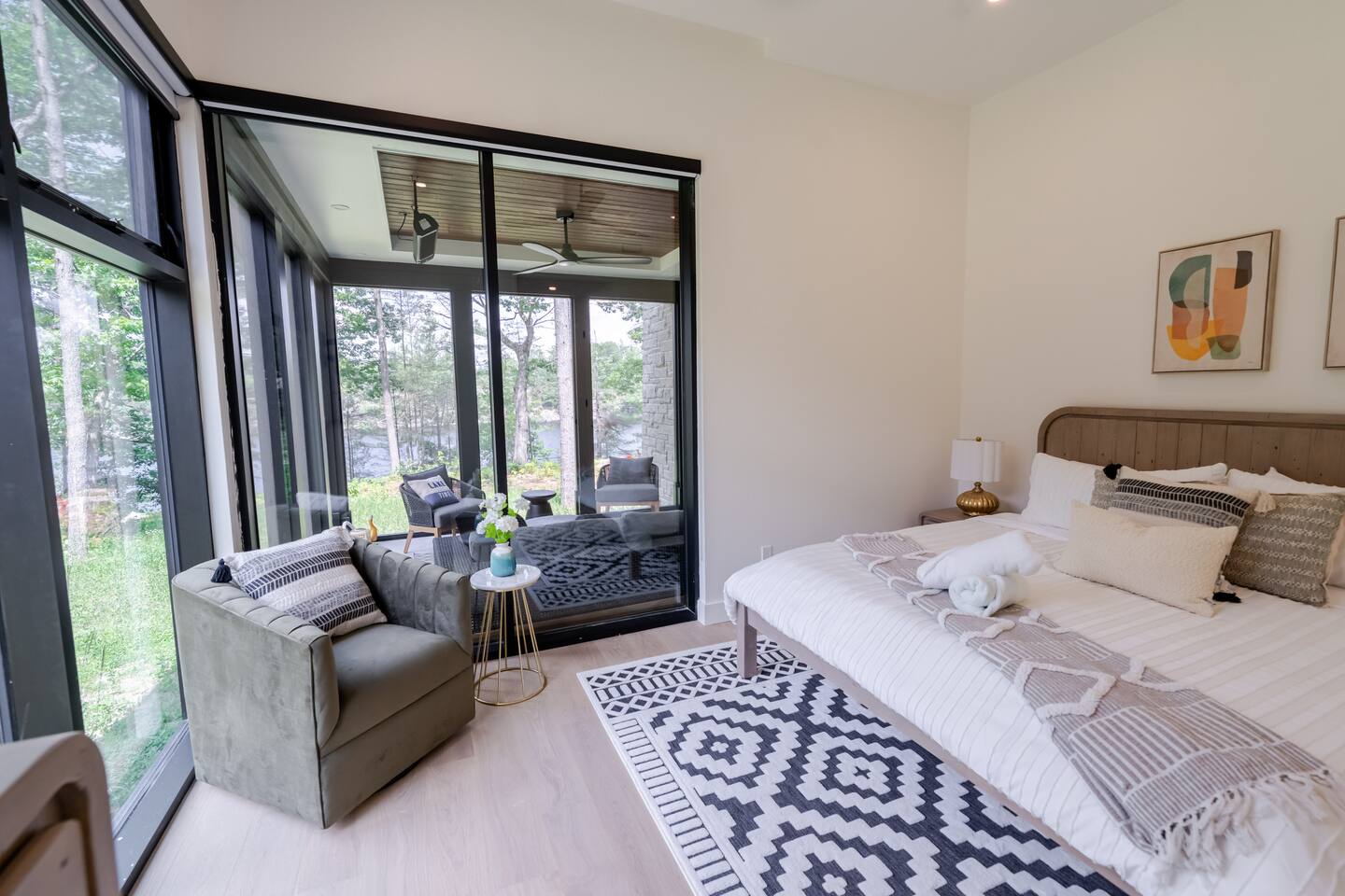 Escape to two stunning, side-by-side luxury cottages on the shores of Muldrew Lake — the ultimate setup for elevated family gatherings, corporate retreats, or special events in Muskoka. Each custom-built, 6-bedroom waterfront cottage offers its own private hot tub, fire pit, and direct lake access — giving you the rare option to book both properties together for large groups, or separately for more intimate getaways. Combined, the cottages sleep up to 24 guests, with over 9,000 sq ft of total living space designed for comfort, privacy, and connection. Located just minutes from Gravenhurst, these four-season retreats blend modern design with serene natural surroundings — perfect for slowing down, recharging, or bringing people together in a setting that feels both luxurious and grounded. PROPERTY HIGHLIGHTS (PER COTTAGE) 6 spacious bedrooms (each) 3 king bedrooms, 1 twin/single rooms, 1 flex/office with 1 single bed Chef’s kitchen with modern appliances, wine fridge, cooking essentials, and both a drip coffee and a Nespresso Vertuo Cups machine. Cozy grand room with soaring windows and fireplace Basement lounge with games area, extra beds, and smart TV ENSUITE INFORMATION 2 master bedrooms on the main floor, each with a full ensuite bathroom, plus a half bathroom in the common area. 2 bedrooms on the second floor share a shower, with individual toilets and sinks. Basement: 1 full bathroom. OUTDOOR AMENITIES (PER COTTAGE) Private hot tub overlooking the lake Fire pit area for late-night conversations under the stars. Please remember to bring your own firewood Expansive deck for yoga, dining, or sunset cocktails Lakefront access with kayaks, floaties, and life jackets included Ample space to relax, reconnect, or celebrate under the trees Whether you’re planning a multi-family getaway, a wellness retreat, or a team offsite, these cottages offer the rare balance of togetherness and privacy — with every detail designed to help you slow down and stay comfortably.