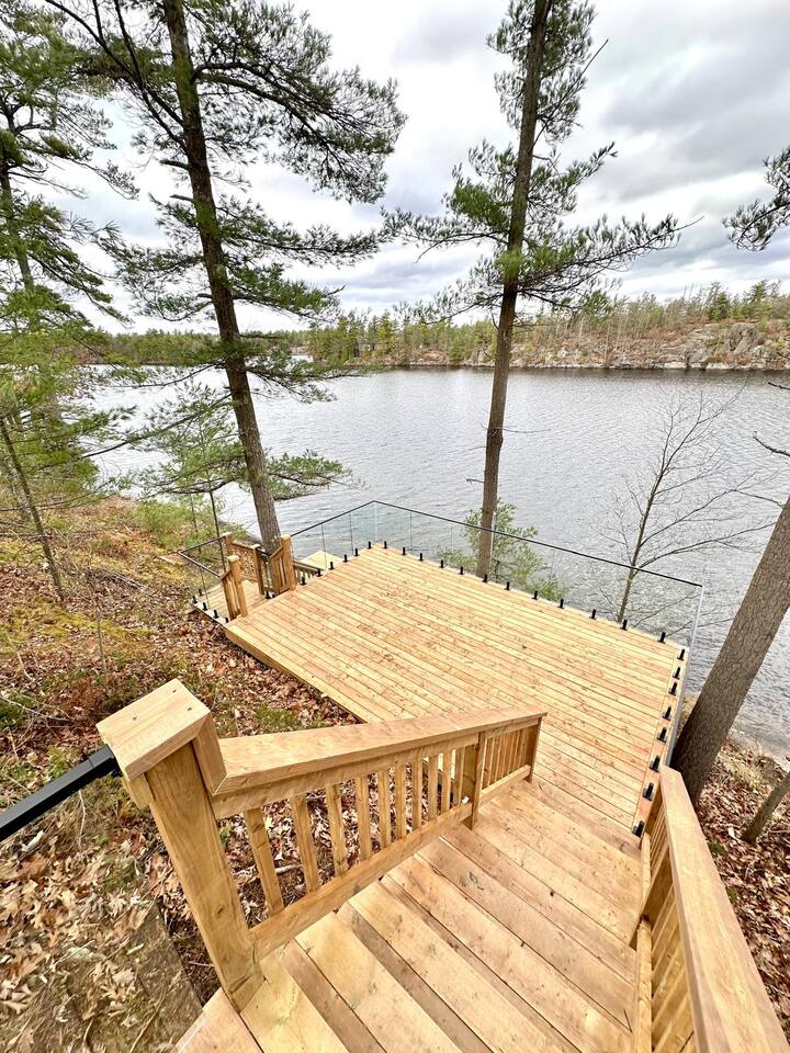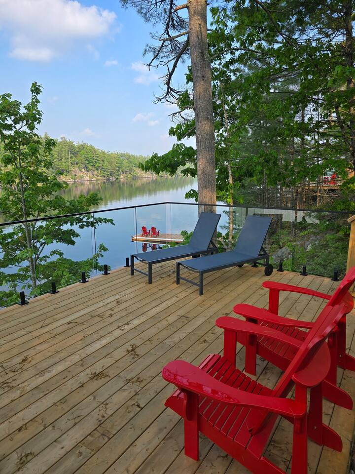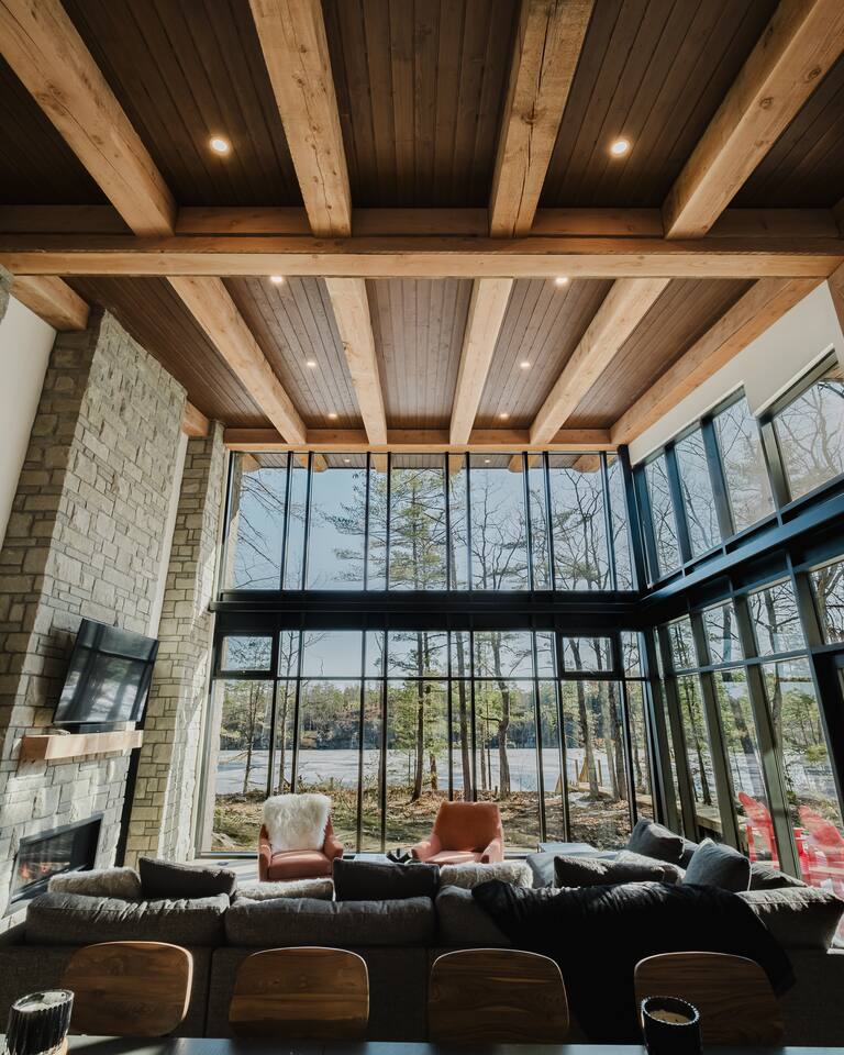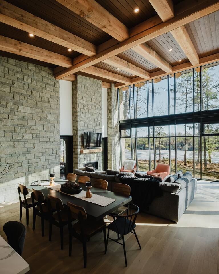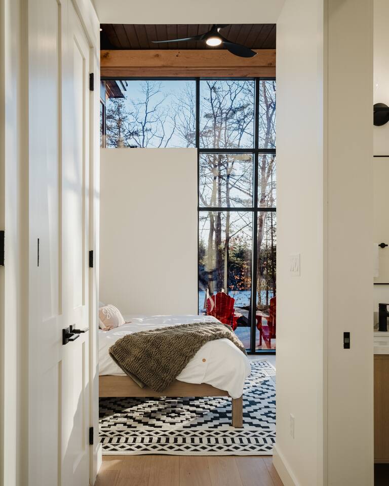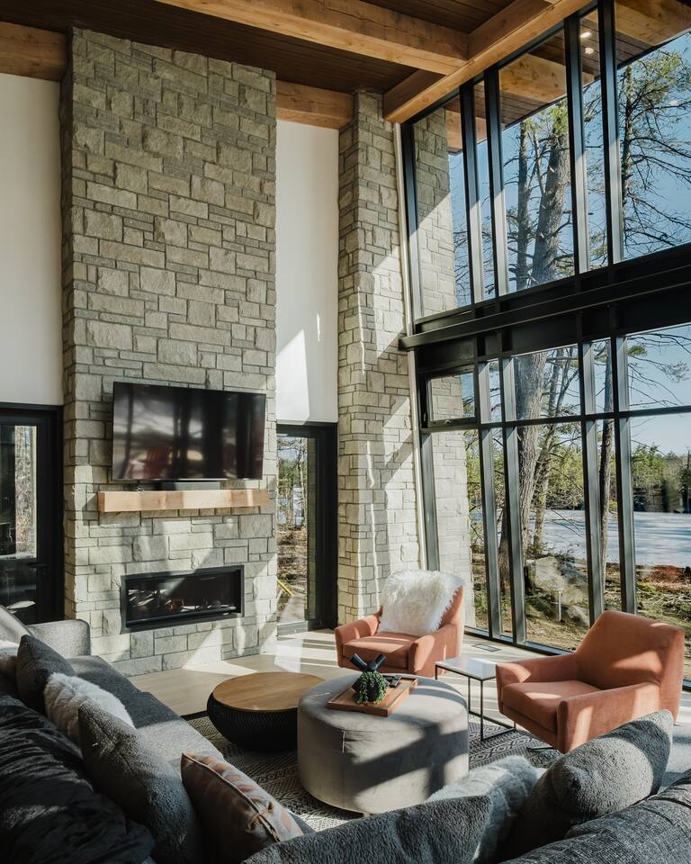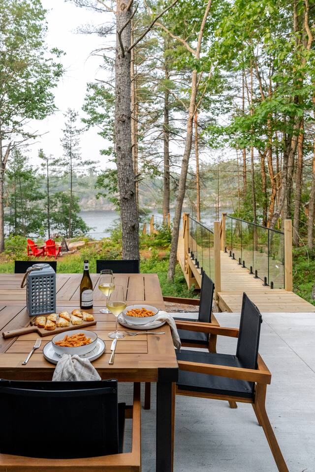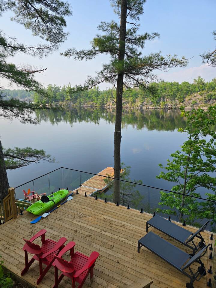 Escape to our stunning, newly built Muskoka waterfront cottage on Muldrew Lake—perfect for family vacations, group getaways, or corporate retreats. With 6 bedrooms and room for up to 12 guests, this spacious and stylish four-season retreat offers comfort, privacy, and all the amenities you need for a memorable stay in the heart of cottage country. Located near Gravenhurst, this 4,600+ sq ft home is perfectly designed to host large groups while still offering cozy spots for quiet relaxation. Plus, with a second custom-built cottage next door (also available to book separately or together!), it’s an ideal setup for multi-family gatherings or corporate retreats—with the added benefit of privacy for each group. Main floor Open concept Kitchen + powder room + dinning room + family room + Muskoka room with TV + 2 full size King Bedrooms each with a full ensuite bathroom + garage Second Floor 1 Bedroom with 2 Single beds + 1 King bedroom - share a shower with individual toilets and sinks. 1 Bedroom with Single Bed + Desk Basement / Game Room Spacious open area featuring a large sofa and TV, plus a full bathroom and two separate rooms: one with a sofa bed ( ideal for children) and games, and the other with a yoga mat. LIVING SPACES Grand room with soaring windows, cozy fireplace, and sweeping lake views Chef’s kitchen with modern appliances, wine fridge, cooking essentials, and both a drip coffee and a Nespresso Vertuo Cups machine. Dining area for shared meals and gatherings OUTDOORS Panoramic observation deck—perfect for yoga, morning coffee, or evening drinks Direct lake access for swimming, kayaking, or lounging on floaties Kayaks, life jackets, and floaties included Fire pit area for late-night conversations under the stars. Please remember to bring your own firewood Whether you’re planning a family trip to Muskoka or hosting a corporate team retreat, this lakeside home has the space, style, and amenities to make it unforgettable.