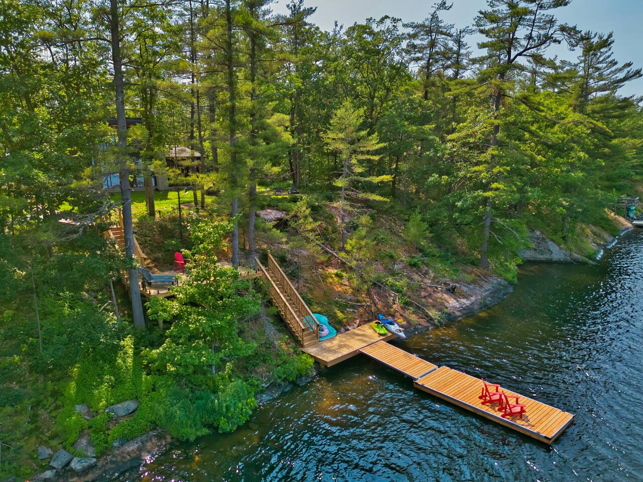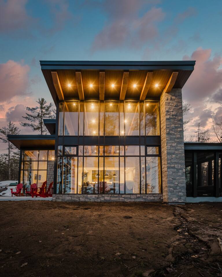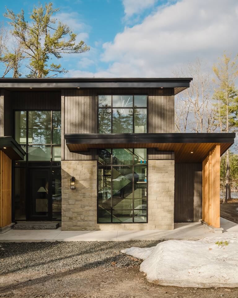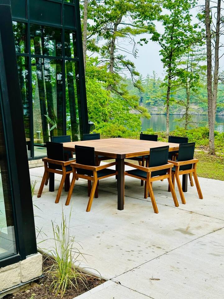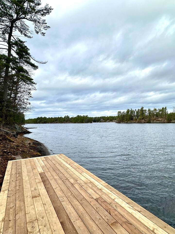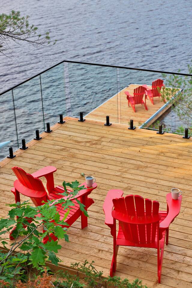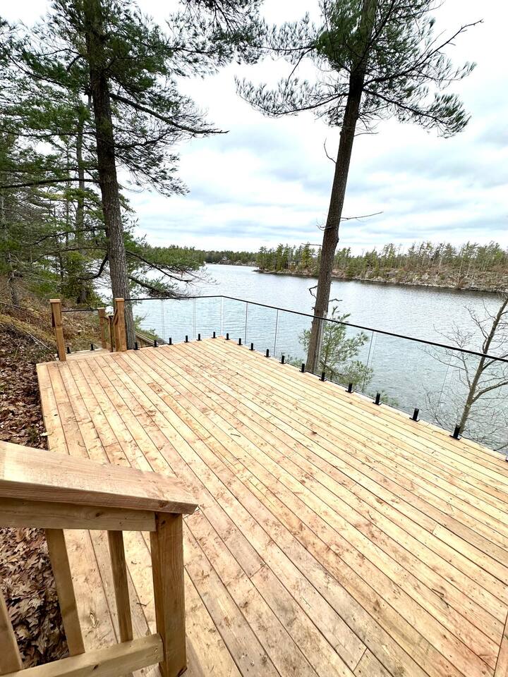 Escape to our stunning, newly built Muskoka waterfront cottage on Muldrew Lake—perfect for family vacations, group getaways, or corporate retreats. With 6 bedrooms and room for up to 12 guests, this spacious and stylish four-season retreat offers comfort, privacy, and all the amenities you need for a memorable stay in the heart of cottage country. Located near Gravenhurst, this 4,600+ sq ft home is perfectly designed to host large groups while still offering cozy spots for quiet relaxation. Plus, with a second custom-built cottage next door (also available to book separately or together!), it’s an ideal setup for multi-family gatherings or corporate retreats—with the added benefit of privacy for each group. Main floor Open concept Kitchen + powder room + dinning room + family room + Muskoka room with TV + 2 full size King Bedrooms each with a full ensuite bathroom + garage Second Floor 1 Bedroom with 2 Single beds + 1 King bedroom - share a shower with individual toilets and sinks. 1 Bedroom with Single Bed + Desk Basement / Game Room Spacious open area featuring a large sofa and TV, plus a full bathroom and two separate rooms: one with a sofa bed ( ideal for children) and games, and the other with a yoga mat. LIVING SPACES Grand room with soaring windows, cozy fireplace, and sweeping lake views Chef’s kitchen with modern appliances, wine fridge, cooking essentials, and both a drip coffee and a Nespresso Vertuo Cups machine. Dining area for shared meals and gatherings OUTDOORS Panoramic observation deck—perfect for yoga, morning coffee, or evening drinks Direct lake access for swimming, kayaking, or lounging on floaties Kayaks, life jackets, and floaties included Fire pit area for late-night conversations under the stars. Please remember to bring your own firewood Whether you’re planning a family trip to Muskoka or hosting a corporate team retreat, this lakeside home has the space, style, and amenities to make it unforgettable.