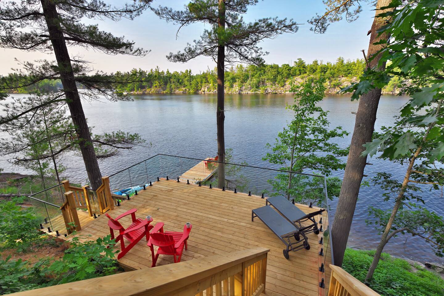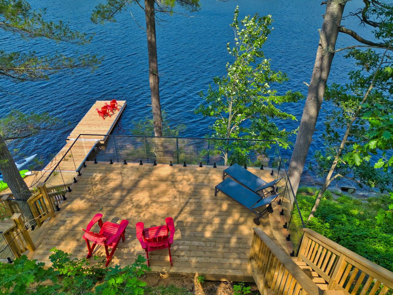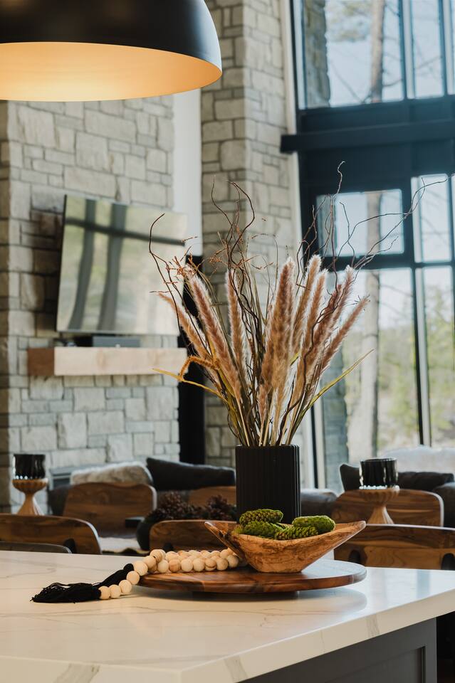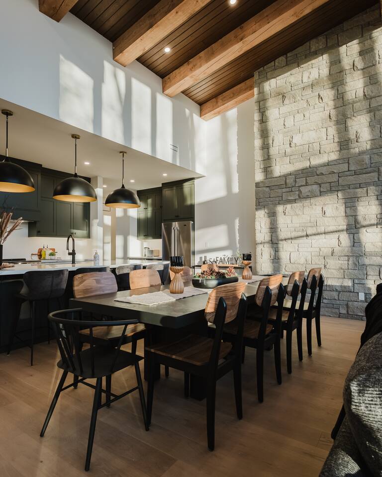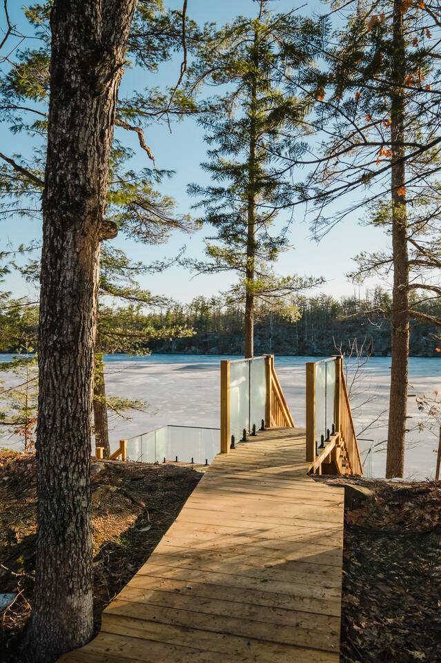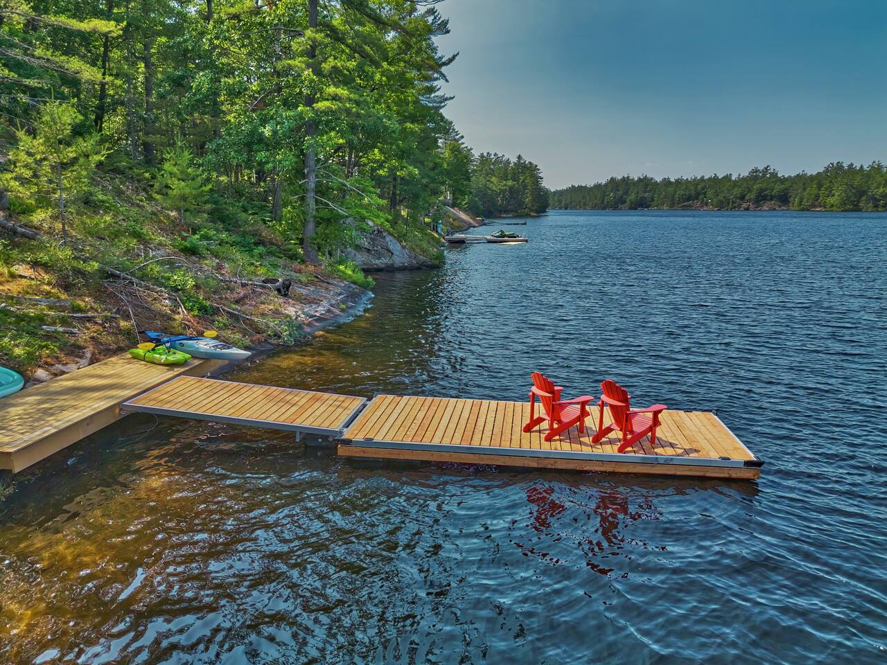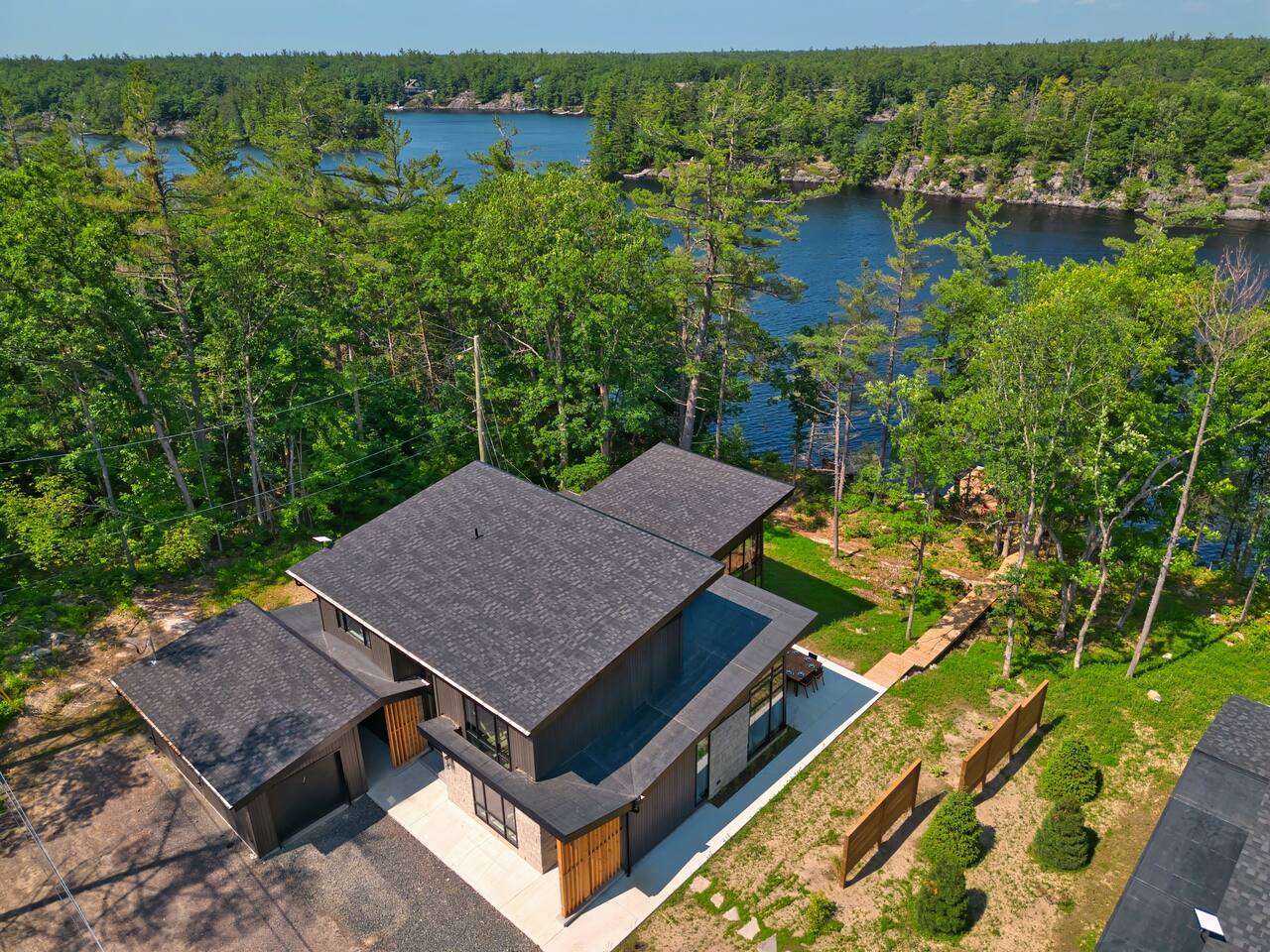 Escape to our stunning, newly built Muskoka waterfront cottage on Muldrew Lake—perfect for family vacations, group getaways, or corporate retreats. With 6 bedrooms and room for up to 12 guests, this spacious and stylish four-season retreat offers comfort, privacy, and all the amenities you need for a memorable stay in the heart of cottage country. Located near Gravenhurst, this 4,600+ sq ft home is perfectly designed to host large groups while still offering cozy spots for quiet relaxation. Plus, with a second custom-built cottage next door (also available to book separately or together!), it’s an ideal setup for multi-family gatherings or corporate retreats—with the added benefit of privacy for each group. Main floor Open concept Kitchen + powder room + dinning room + family room + Muskoka room with TV + 2 full size King Bedrooms each with a full ensuite bathroom + garage Second Floor 1 Bedroom with 2 Single beds + 1 King bedroom - share a shower with individual toilets and sinks. 1 Bedroom with Single Bed + Desk Basement / Game Room Spacious open area featuring a large sofa and TV, plus a full bathroom and two separate rooms: one with a sofa bed ( ideal for children) and games, and the other with a yoga mat. LIVING SPACES Grand room with soaring windows, cozy fireplace, and sweeping lake views Chef’s kitchen with modern appliances, wine fridge, cooking essentials, and both a drip coffee and a Nespresso Vertuo Cups machine. Dining area for shared meals and gatherings OUTDOORS Panoramic observation deck—perfect for yoga, morning coffee, or evening drinks Direct lake access for swimming, kayaking, or lounging on floaties Kayaks, life jackets, and floaties included Fire pit area for late-night conversations under the stars. Please remember to bring your own firewood Whether you’re planning a family trip to Muskoka or hosting a corporate team retreat, this lakeside home has the space, style, and amenities to make it unforgettable.
