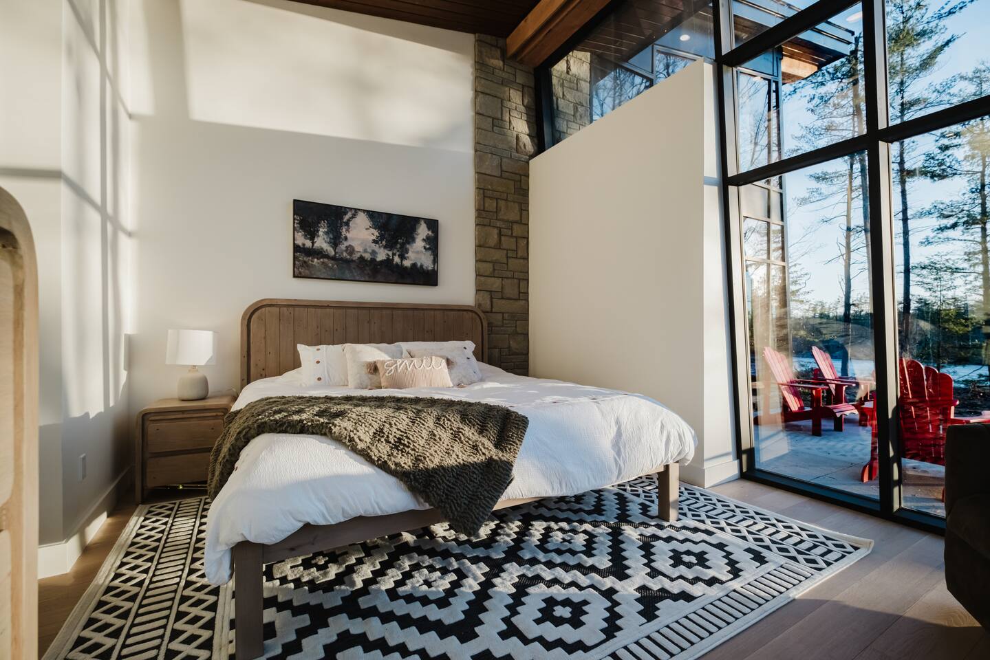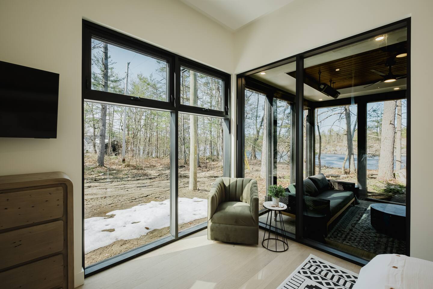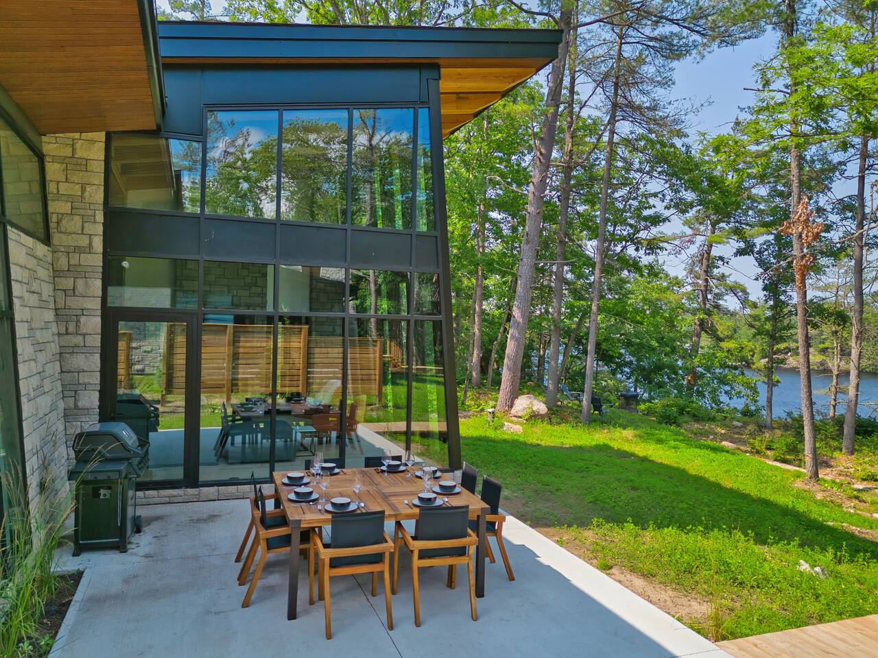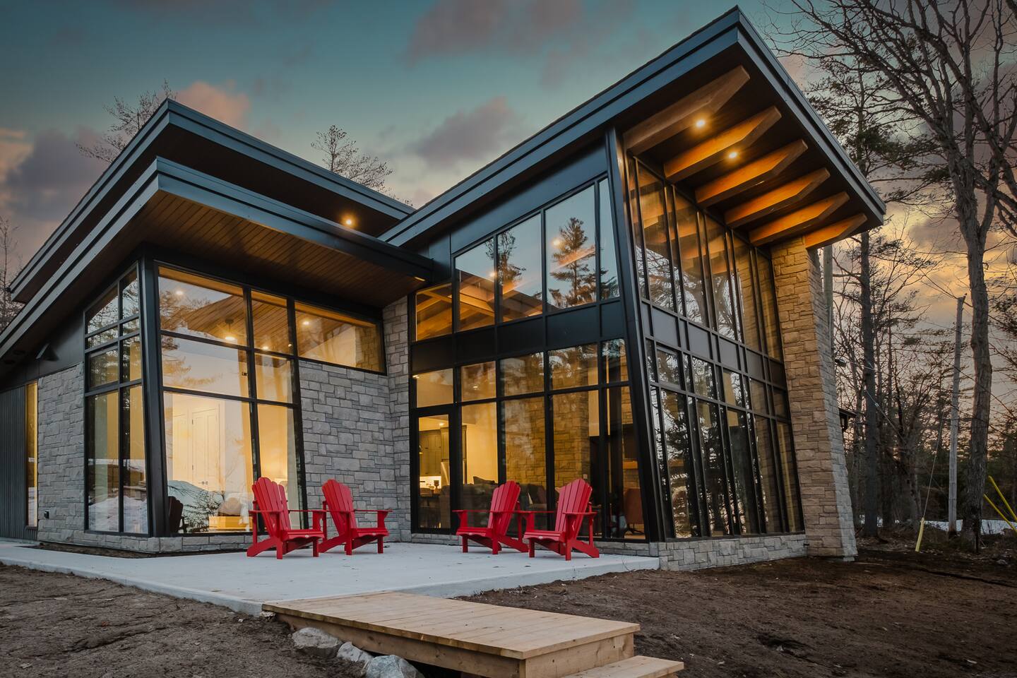 Escape to our stunning, newly built Muskoka waterfront cottage on Muldrew Lake—perfect for family vacations, group getaways, or corporate retreats. With 6 bedrooms and room for up to 12 guests, this spacious and stylish four-season retreat offers comfort, privacy, and all the amenities you need for a memorable stay in the heart of cottage country. Located near Gravenhurst, this 4,600+ sq ft home is perfectly designed to host large groups while still offering cozy spots for quiet relaxation. Plus, with a second custom-built cottage next door (also available to book separately or together!), it’s an ideal setup for multi-family gatherings or corporate retreats—with the added benefit of privacy for each group. Main floor Open concept Kitchen + powder room + dinning room + family room + Muskoka room with TV + 2 full size King Bedrooms each with a full ensuite bathroom + garage Second Floor 1 Bedroom with 2 Single beds + 1 King bedroom - share a shower with individual toilets and sinks. 1 Bedroom with Single Bed + Desk Basement / Game Room Spacious open area featuring a large sofa and TV, plus a full bathroom and two separate rooms: one with a sofa bed ( ideal for children) and games, and the other with a yoga mat. LIVING SPACES Grand room with soaring windows, cozy fireplace, and sweeping lake views Chef’s kitchen with modern appliances, wine fridge, cooking essentials, and both a drip coffee and a Nespresso Vertuo Cups machine. Dining area for shared meals and gatherings OUTDOORS Panoramic observation deck—perfect for yoga, morning coffee, or evening drinks Direct lake access for swimming, kayaking, or lounging on floaties Kayaks, life jackets, and floaties included Fire pit area for late-night conversations under the stars. Please remember to bring your own firewood Whether you’re planning a family trip to Muskoka or hosting a corporate team retreat, this lakeside home has the space, style, and amenities to make it unforgettable.