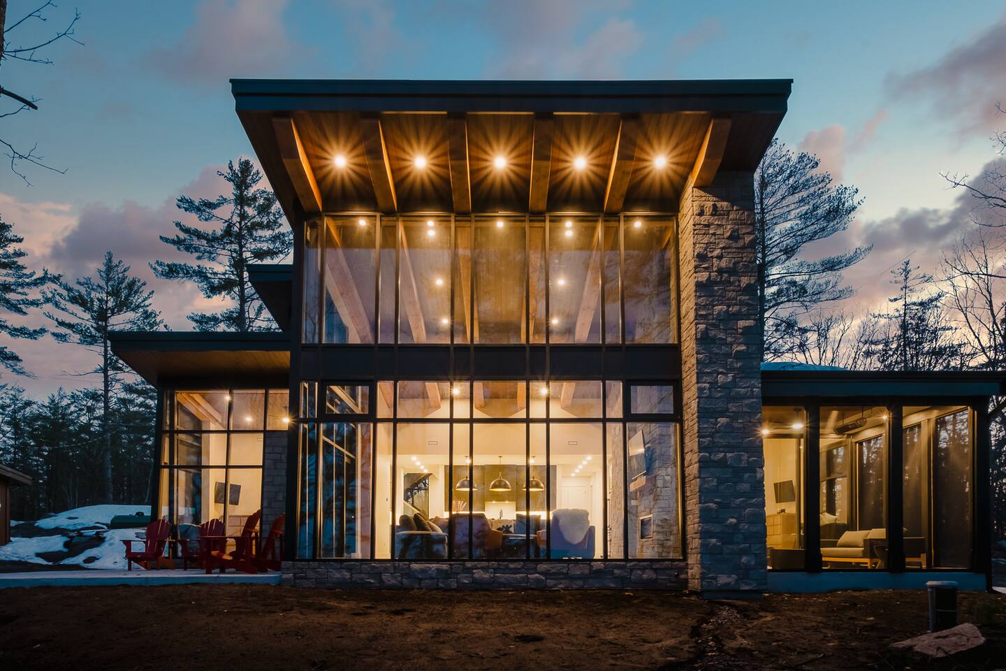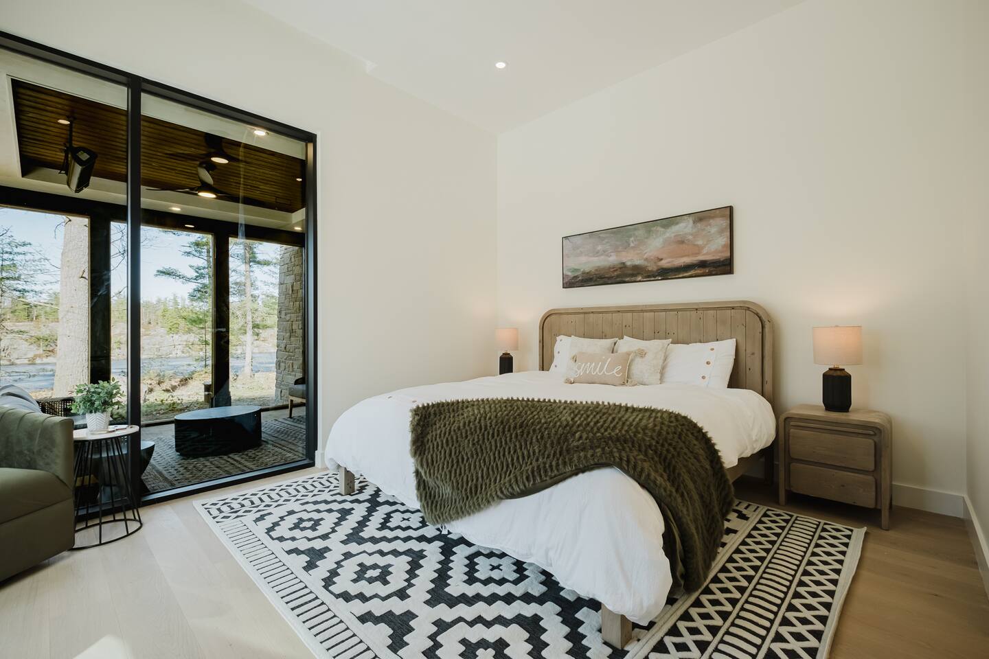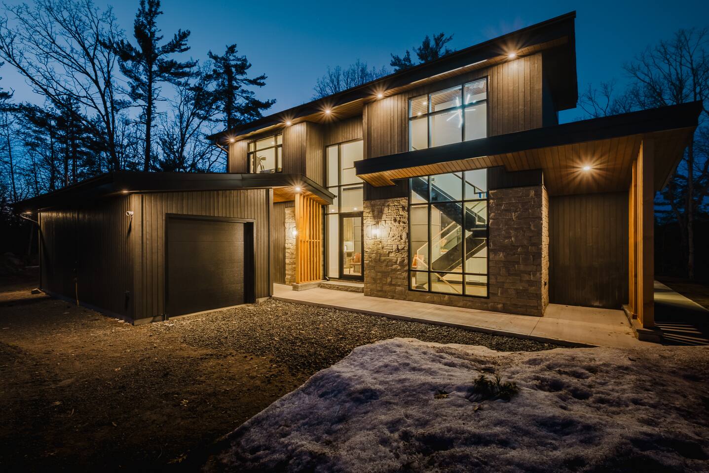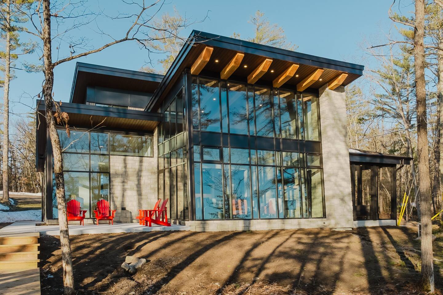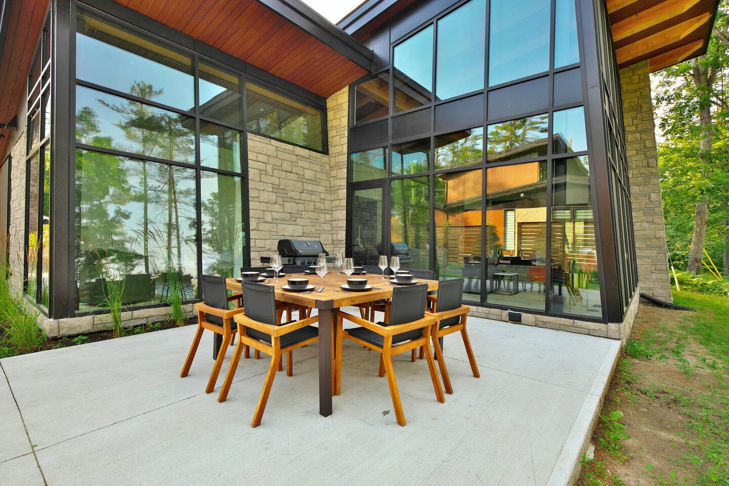 Escape to our stunning, newly built Muskoka waterfront cottage on Muldrew Lake—perfect for family vacations, group getaways, or corporate retreats. With 6 bedrooms and room for up to 12 guests, this spacious and stylish four-season retreat offers comfort, privacy, and all the amenities you need for a memorable stay in the heart of cottage country. Located near Gravenhurst, this 4,600+ sq ft home is perfectly designed to host large groups while still offering cozy spots for quiet relaxation. Plus, with a second custom-built cottage next door (also available to book separately or together!), it’s an ideal setup for multi-family gatherings or corporate retreats—with the added benefit of privacy for each group. Main floor Open concept Kitchen + powder room + dinning room + family room + Muskoka room with TV + 2 full size King Bedrooms each with a full ensuite bathroom + garage Second Floor 1 Bedroom with 2 Single beds + 1 King bedroom - share a shower with individual toilets and sinks. 1 Bedroom with Single Bed + Desk Basement / Game Room Spacious open area featuring a large sofa and TV, plus a full bathroom and two separate rooms: one with a sofa bed ( ideal for children) and games, and the other with a yoga mat. LIVING SPACES Grand room with soaring windows, cozy fireplace, and sweeping lake views Chef’s kitchen with modern appliances, wine fridge, cooking essentials, and both a drip coffee and a Nespresso Vertuo Cups machine. Dining area for shared meals and gatherings OUTDOORS Panoramic observation deck—perfect for yoga, morning coffee, or evening drinks Direct lake access for swimming, kayaking, or lounging on floaties Kayaks, life jackets, and floaties included Fire pit area for late-night conversations under the stars. Please remember to bring your own firewood Whether you’re planning a family trip to Muskoka or hosting a corporate team retreat, this lakeside home has the space, style, and amenities to make it unforgettable.