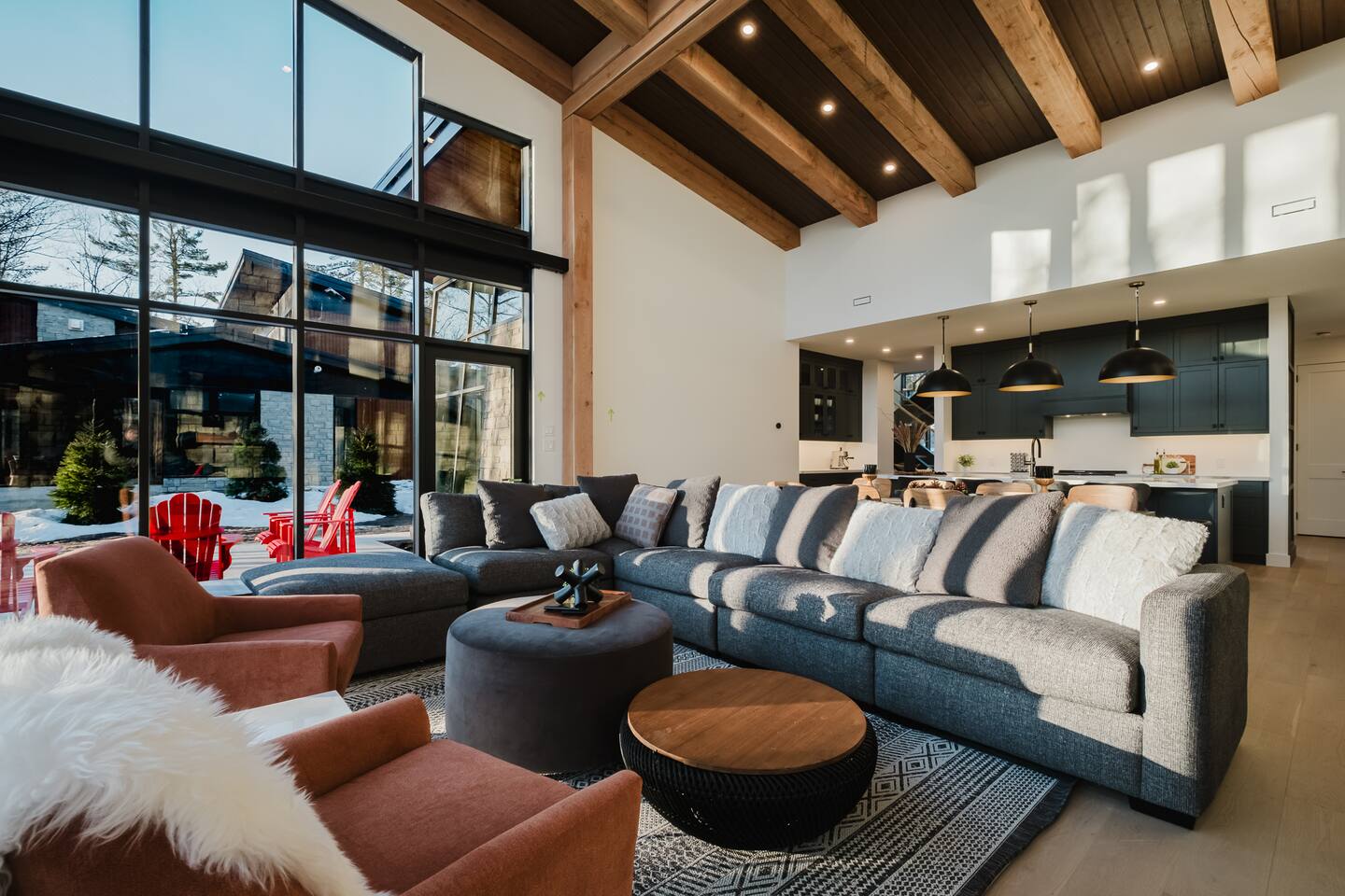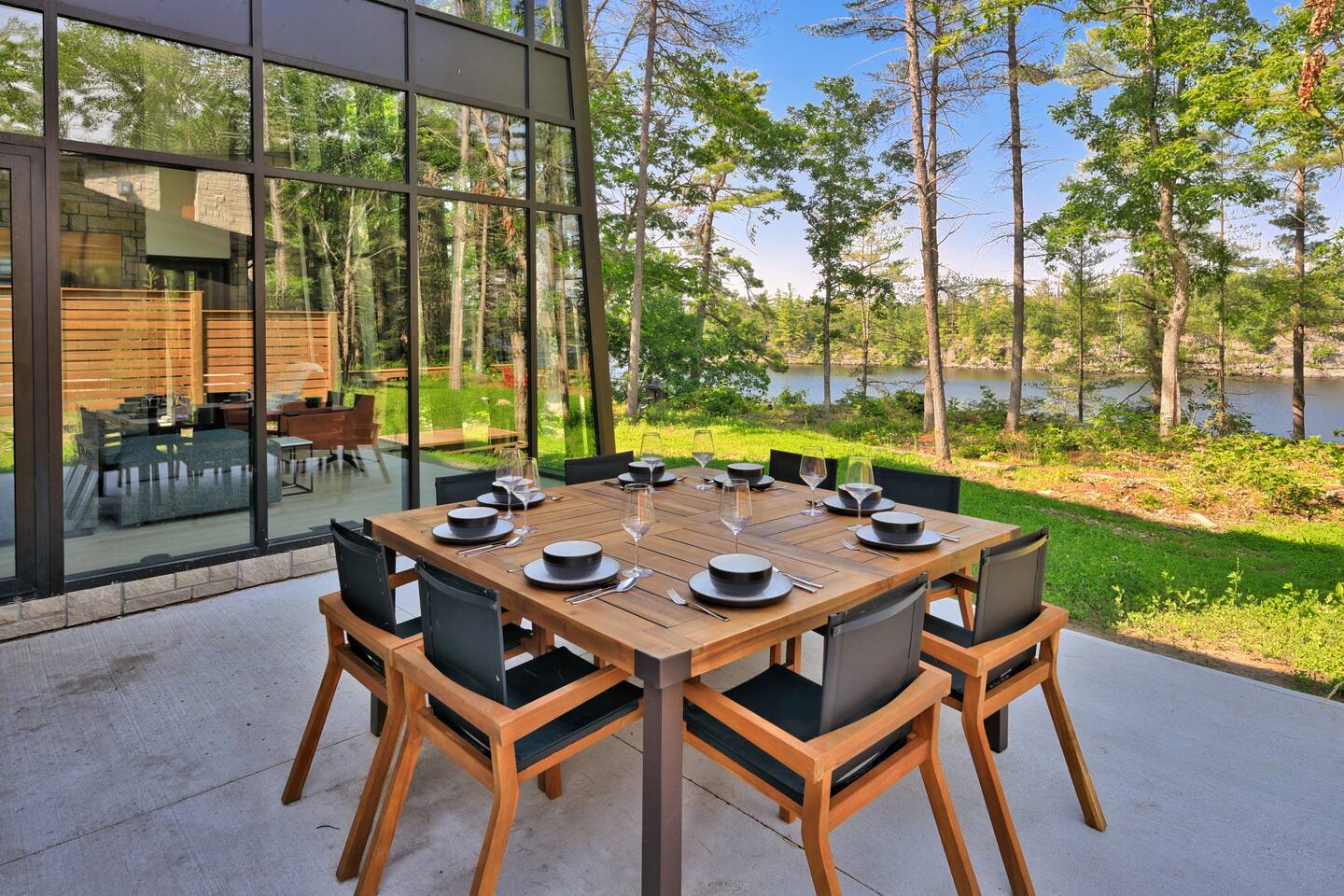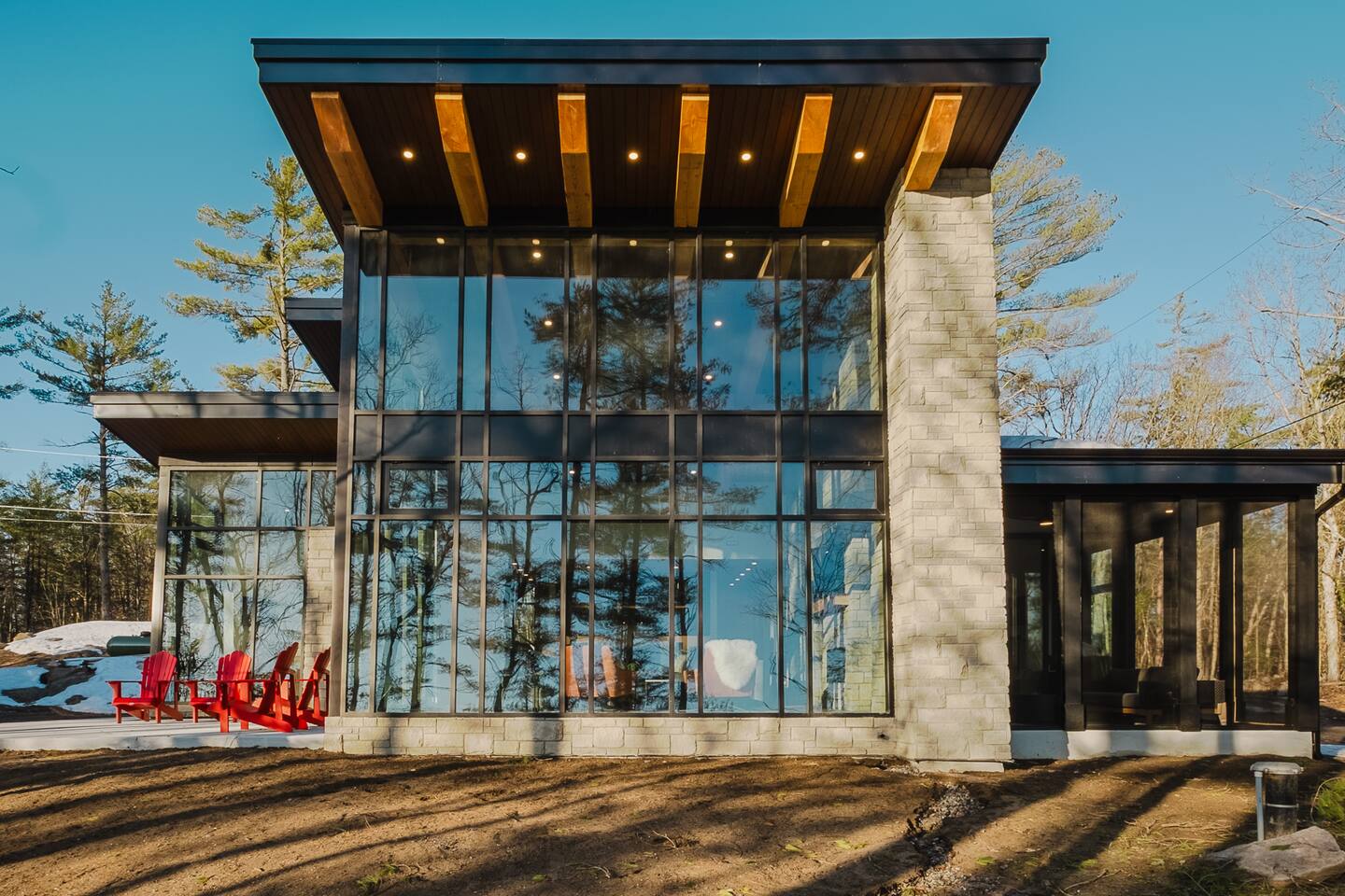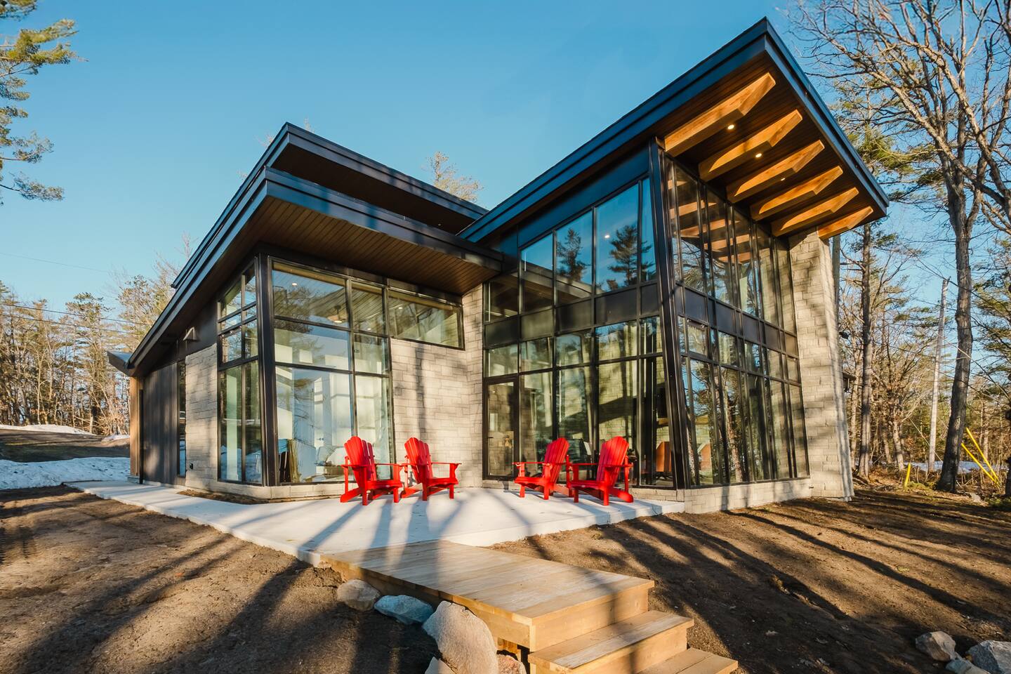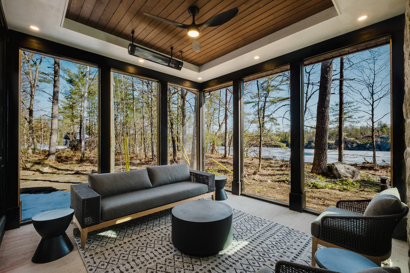 Escape to our stunning, newly built Muskoka waterfront cottage on Muldrew Lake—perfect for family vacations, group getaways, or corporate retreats. With 6 bedrooms and room for up to 12 guests, this spacious and stylish four-season retreat offers comfort, privacy, and all the amenities you need for a memorable stay in the heart of cottage country. Located near Gravenhurst, this 4,600+ sq ft home is perfectly designed to host large groups while still offering cozy spots for quiet relaxation. Plus, with a second custom-built cottage next door (also available to book separately or together!), it’s an ideal setup for multi-family gatherings or corporate retreats—with the added benefit of privacy for each group. Main floor Open concept Kitchen + powder room + dinning room + family room + Muskoka room with TV + 2 full size King Bedrooms each with a full ensuite bathroom + garage Second Floor 1 Bedroom with 2 Single beds + 1 King bedroom - share a shower with individual toilets and sinks. 1 Bedroom with Single Bed + Desk Basement / Game Room Spacious open area featuring a large sofa and TV, plus a full bathroom and two separate rooms: one with a sofa bed ( ideal for children) and games, and the other with a yoga mat. LIVING SPACES Grand room with soaring windows, cozy fireplace, and sweeping lake views Chef’s kitchen with modern appliances, wine fridge, cooking essentials, and both a drip coffee and a Nespresso Vertuo Cups machine. Dining area for shared meals and gatherings OUTDOORS Panoramic observation deck—perfect for yoga, morning coffee, or evening drinks Direct lake access for swimming, kayaking, or lounging on floaties Kayaks, life jackets, and floaties included Fire pit area for late-night conversations under the stars. Please remember to bring your own firewood Whether you’re planning a family trip to Muskoka or hosting a corporate team retreat, this lakeside home has the space, style, and amenities to make it unforgettable.
