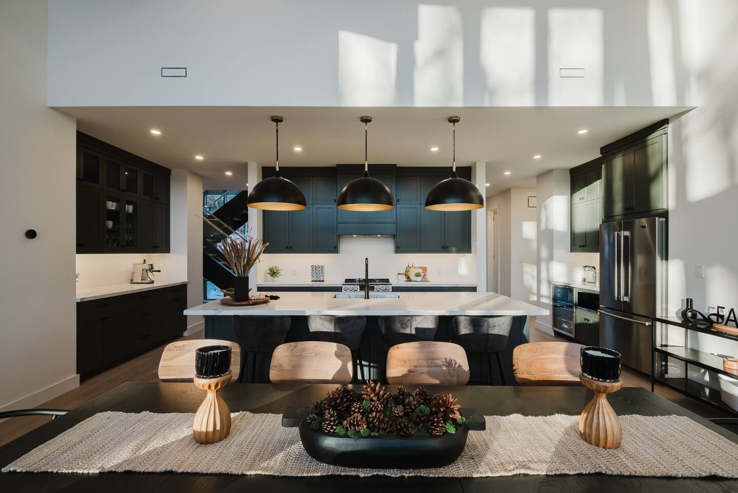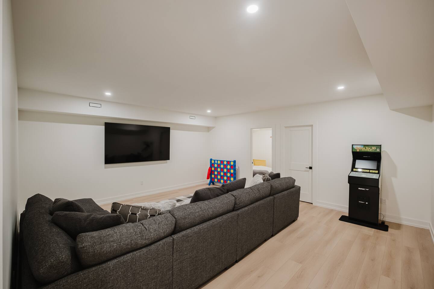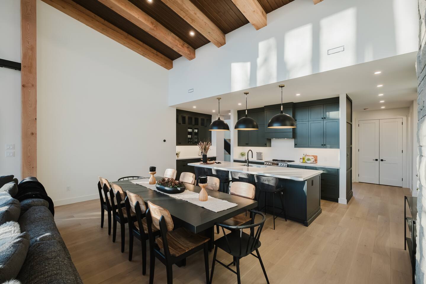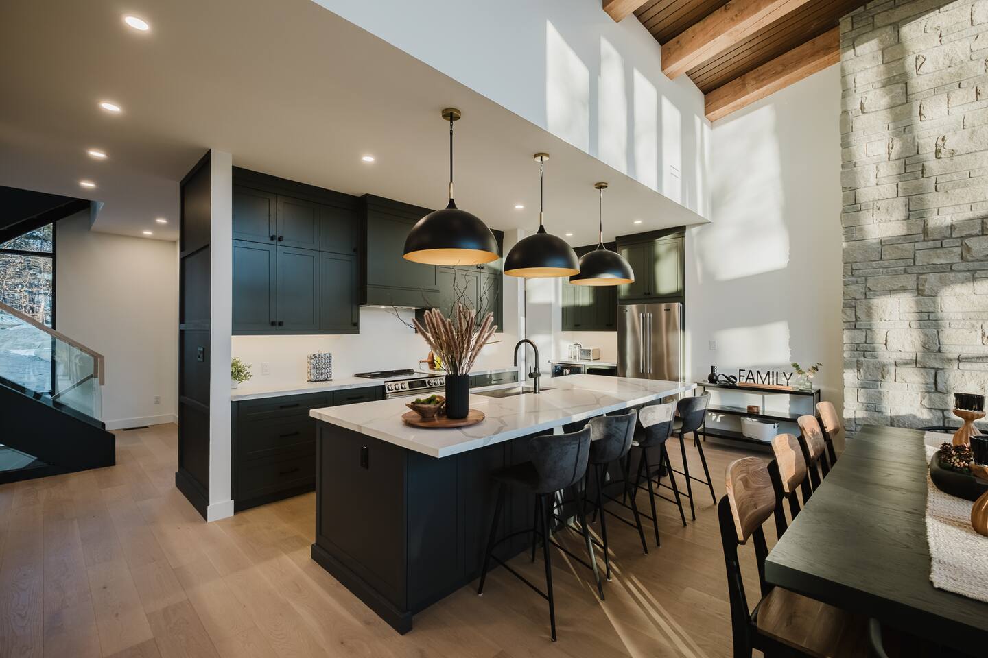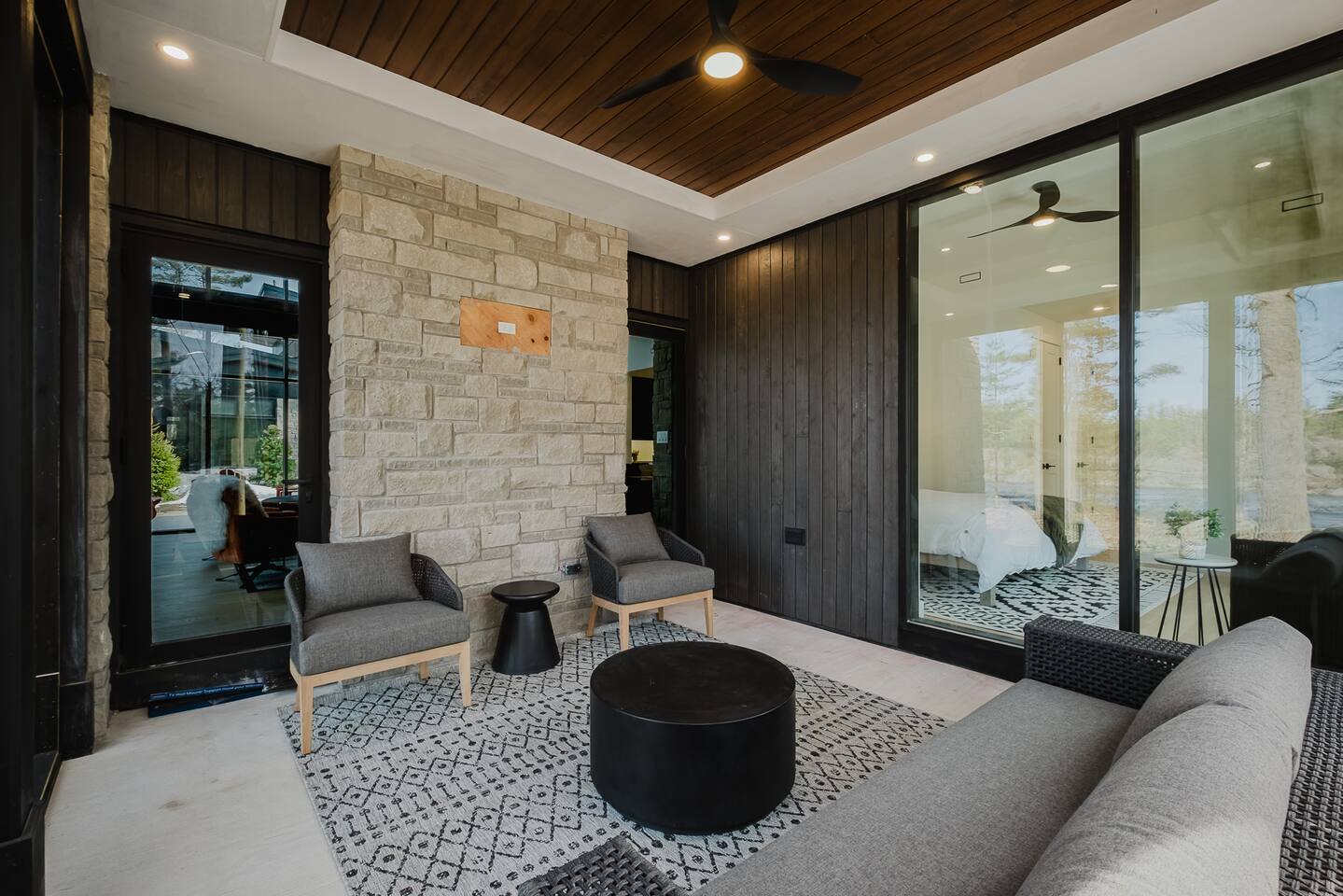 Escape to our stunning, newly built Muskoka waterfront cottage on Muldrew Lake—perfect for family vacations, group getaways, or corporate retreats. With 6 bedrooms and room for up to 12 guests, this spacious and stylish four-season retreat offers comfort, privacy, and all the amenities you need for a memorable stay in the heart of cottage country. Located near Gravenhurst, this 4,600+ sq ft home is perfectly designed to host large groups while still offering cozy spots for quiet relaxation. Plus, with a second custom-built cottage next door (also available to book separately or together!), it’s an ideal setup for multi-family gatherings or corporate retreats—with the added benefit of privacy for each group. Main floor Open concept Kitchen + powder room + dinning room + family room + Muskoka room with TV + 2 full size King Bedrooms each with a full ensuite bathroom + garage Second Floor 1 Bedroom with 2 Single beds + 1 King bedroom - share a shower with individual toilets and sinks. 1 Bedroom with Single Bed + Desk Basement / Game Room Spacious open area featuring a large sofa and TV, plus a full bathroom and two separate rooms: one with a sofa bed ( ideal for children) and games, and the other with a yoga mat. LIVING SPACES Grand room with soaring windows, cozy fireplace, and sweeping lake views Chef’s kitchen with modern appliances, wine fridge, cooking essentials, and both a drip coffee and a Nespresso Vertuo Cups machine. Dining area for shared meals and gatherings OUTDOORS Panoramic observation deck—perfect for yoga, morning coffee, or evening drinks Direct lake access for swimming, kayaking, or lounging on floaties Kayaks, life jackets, and floaties included Fire pit area for late-night conversations under the stars. Please remember to bring your own firewood Whether you’re planning a family trip to Muskoka or hosting a corporate team retreat, this lakeside home has the space, style, and amenities to make it unforgettable.