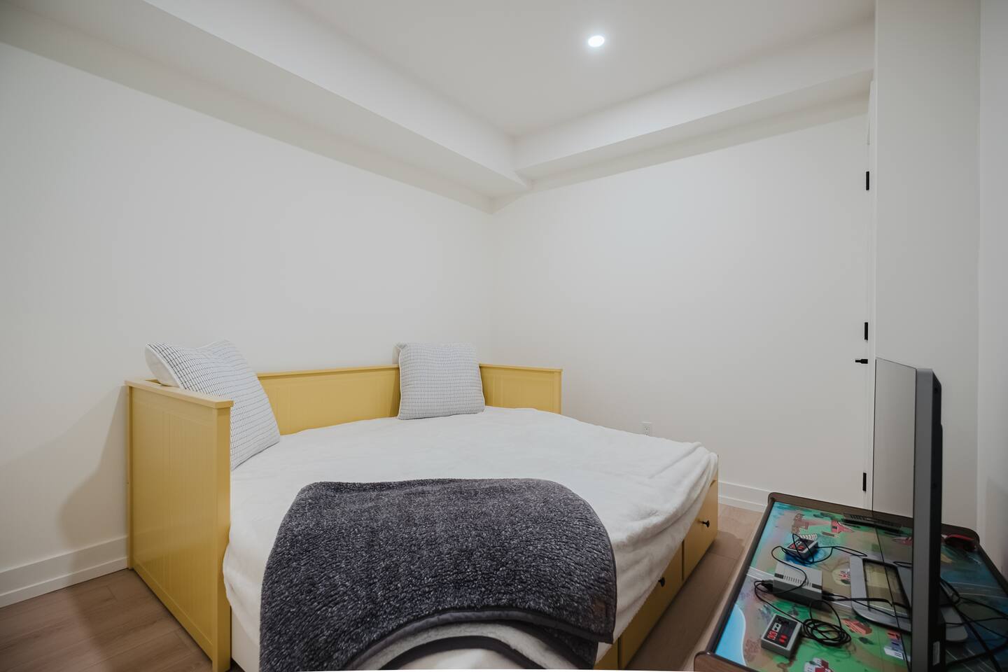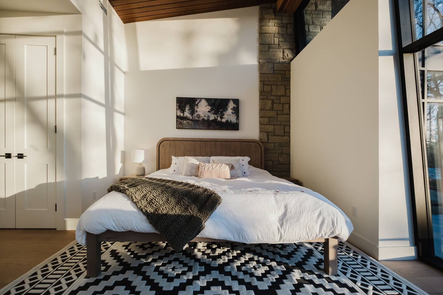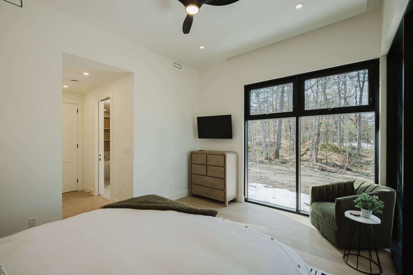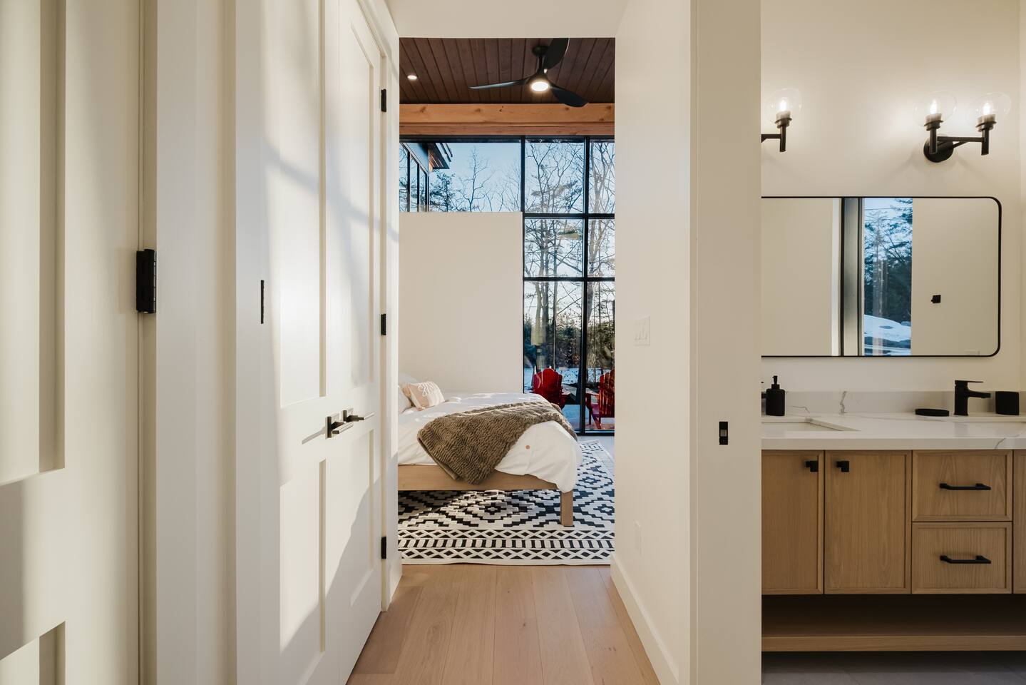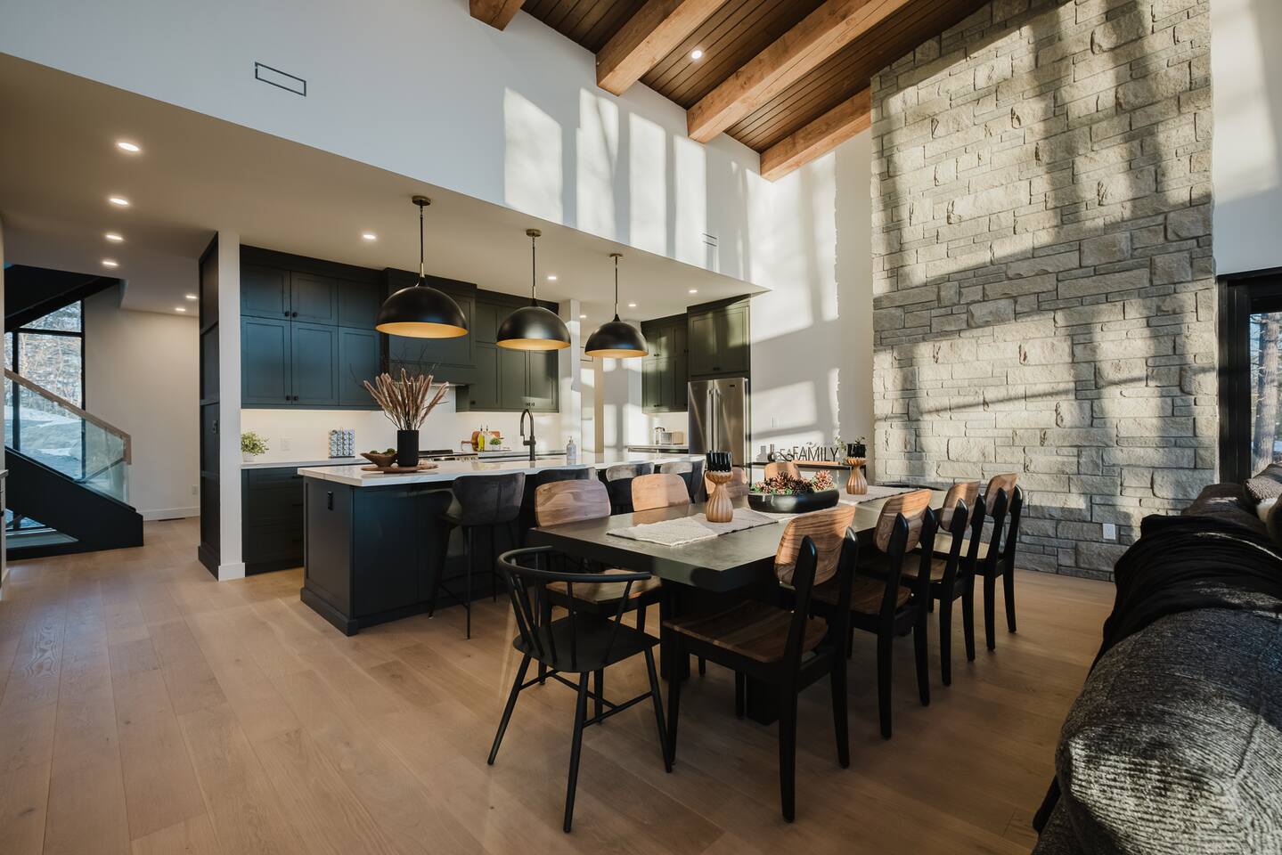 Escape to our stunning, newly built Muskoka waterfront cottage on Muldrew Lake—perfect for family vacations, group getaways, or corporate retreats. With 6 bedrooms and room for up to 12 guests, this spacious and stylish four-season retreat offers comfort, privacy, and all the amenities you need for a memorable stay in the heart of cottage country. Located near Gravenhurst, this 4,600+ sq ft home is perfectly designed to host large groups while still offering cozy spots for quiet relaxation. Plus, with a second custom-built cottage next door (also available to book separately or together!), it’s an ideal setup for multi-family gatherings or corporate retreats—with the added benefit of privacy for each group. Main floor Open concept Kitchen + powder room + dinning room + family room + Muskoka room with TV + 2 full size King Bedrooms each with a full ensuite bathroom + garage Second Floor 1 Bedroom with 2 Single beds + 1 King bedroom - share a shower with individual toilets and sinks. 1 Bedroom with Single Bed + Desk Basement / Game Room Spacious open area featuring a large sofa and TV, plus a full bathroom and two separate rooms: one with a sofa bed ( ideal for children) and games, and the other with a yoga mat. LIVING SPACES Grand room with soaring windows, cozy fireplace, and sweeping lake views Chef’s kitchen with modern appliances, wine fridge, cooking essentials, and both a drip coffee and a Nespresso Vertuo Cups machine. Dining area for shared meals and gatherings OUTDOORS Panoramic observation deck—perfect for yoga, morning coffee, or evening drinks Direct lake access for swimming, kayaking, or lounging on floaties Kayaks, life jackets, and floaties included Fire pit area for late-night conversations under the stars. Please remember to bring your own firewood Whether you’re planning a family trip to Muskoka or hosting a corporate team retreat, this lakeside home has the space, style, and amenities to make it unforgettable.