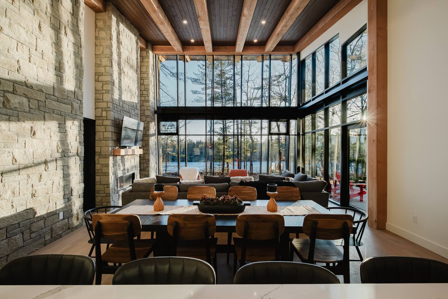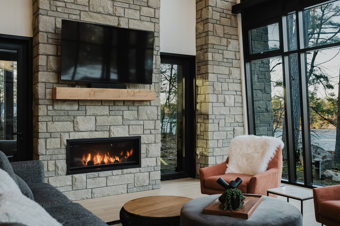 Welcome to your dream getaway! This luxurious 6-bedroom waterfront cottage on Muldrew Lake is perfect for families visiting Muskoka. Sleeps 12 with over 4,600 sq ft of space, soaring windows, a chef’s kitchen, and a cozy fireplace. Enjoy lakefront living year-round with swimming, kayaking, and nearby Gravenhurst attractions. Ideal for multi-family getaways or group retreats. A modern Muskoka escape with comfort, space, and unforgettable views.